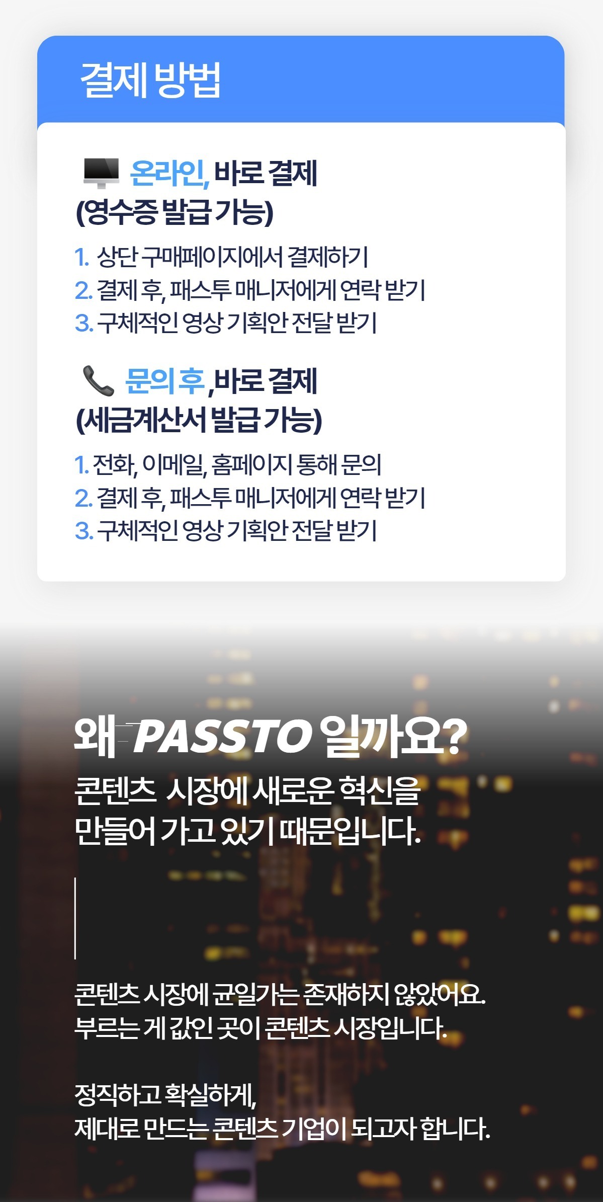 패스투에서는 클라이언트의 아이디어가 현실로 구현되는 과정을 더욱 직관적이고 명확하게 합니다. 영상 제작 전, 구체적인 스토리보드를 제공하여 완성된 영상을 예측할 수 있도록 돕습니다.