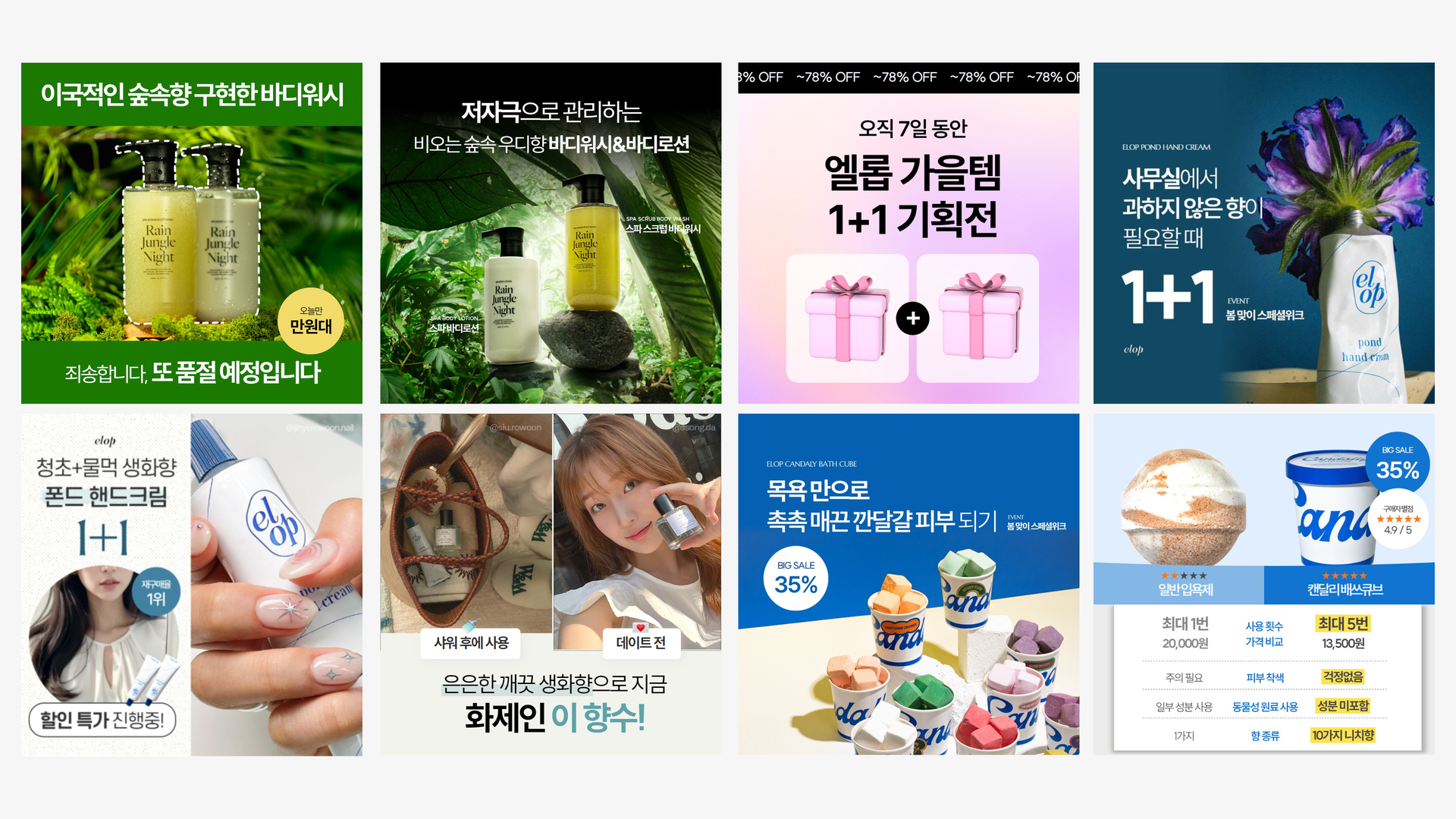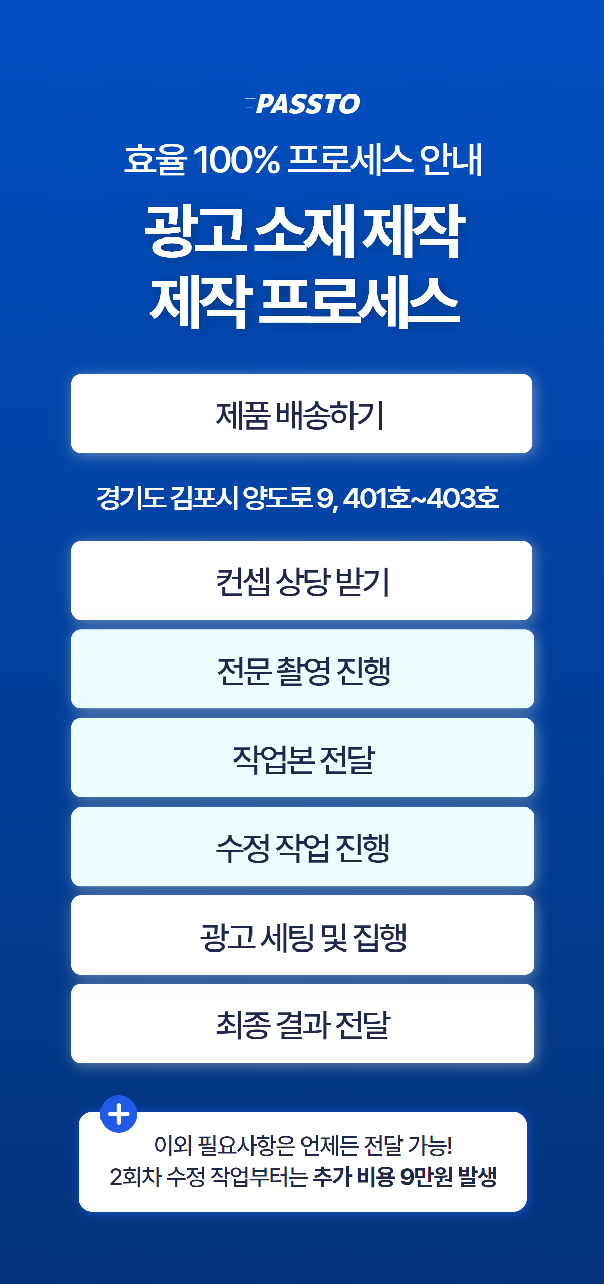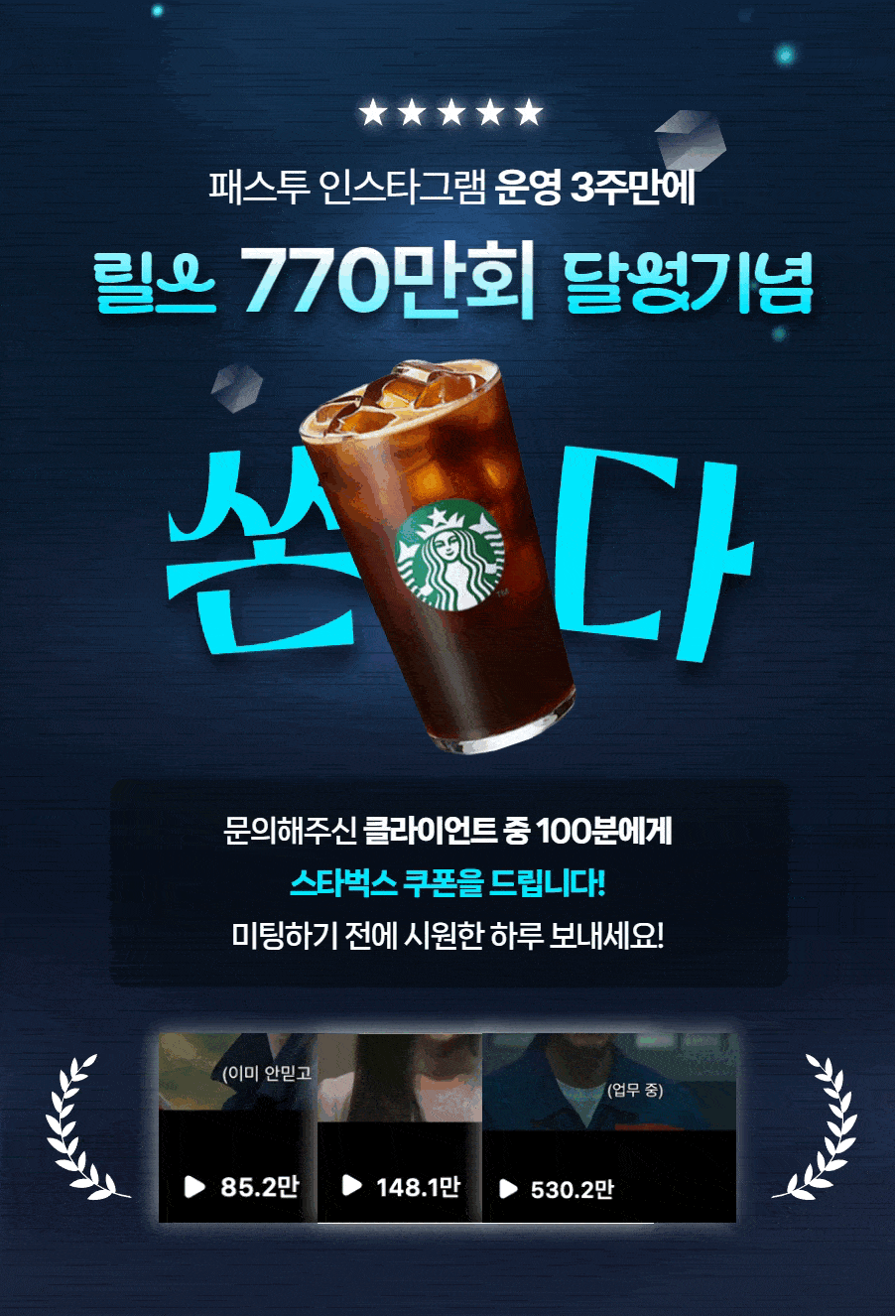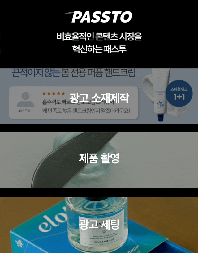 마케팅 전문가인 패스투는 고객들이 프로모션과 제품의 정보를 짧은 시간 내에 파악할 수 있도록 템플릿을 디자인하여 본격적인 광고 소재를 제작합니다 🎨