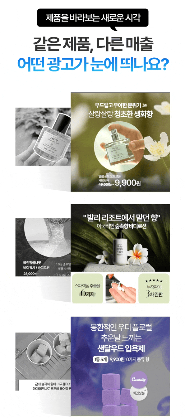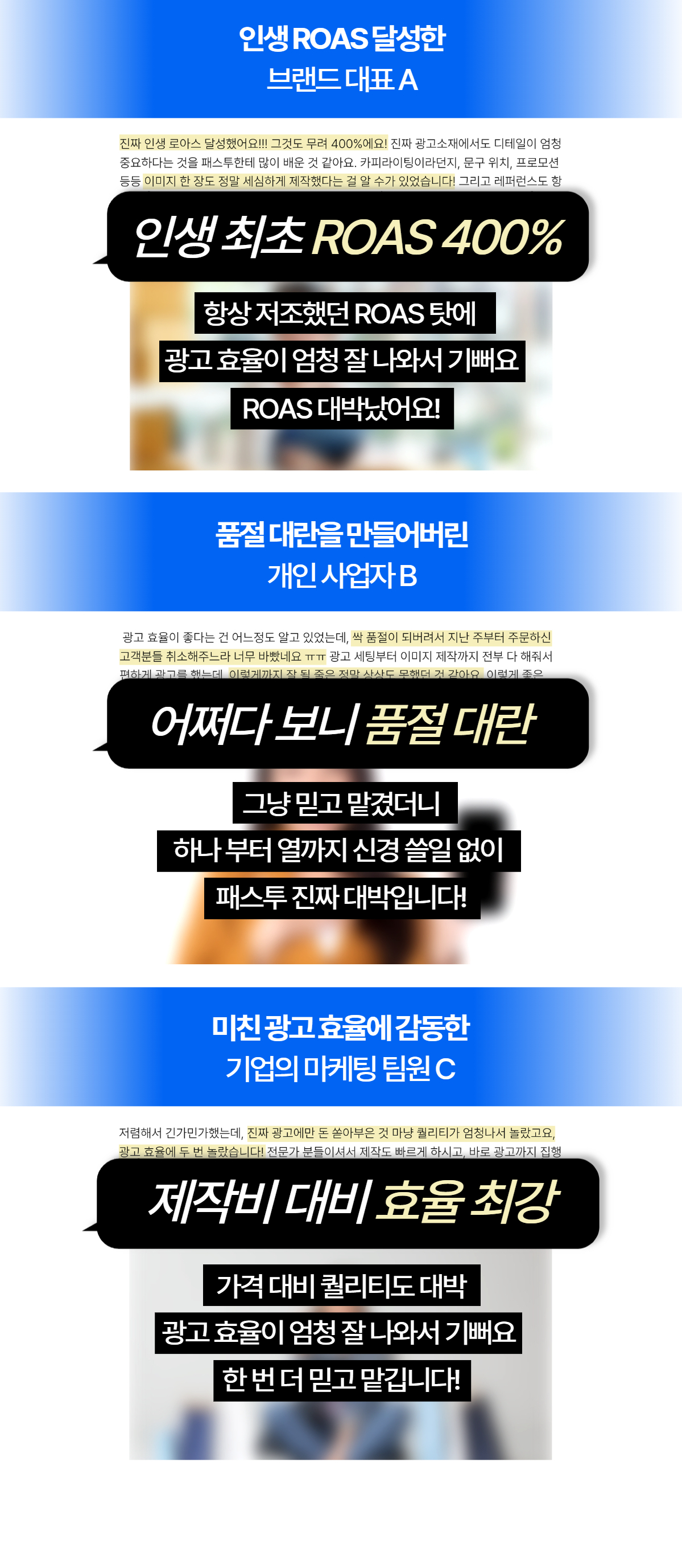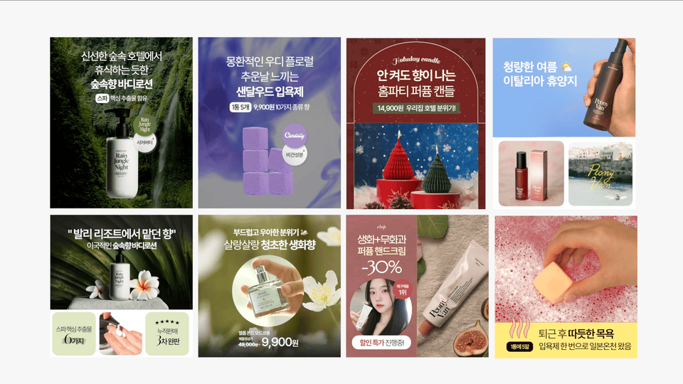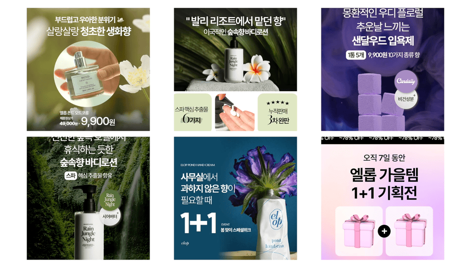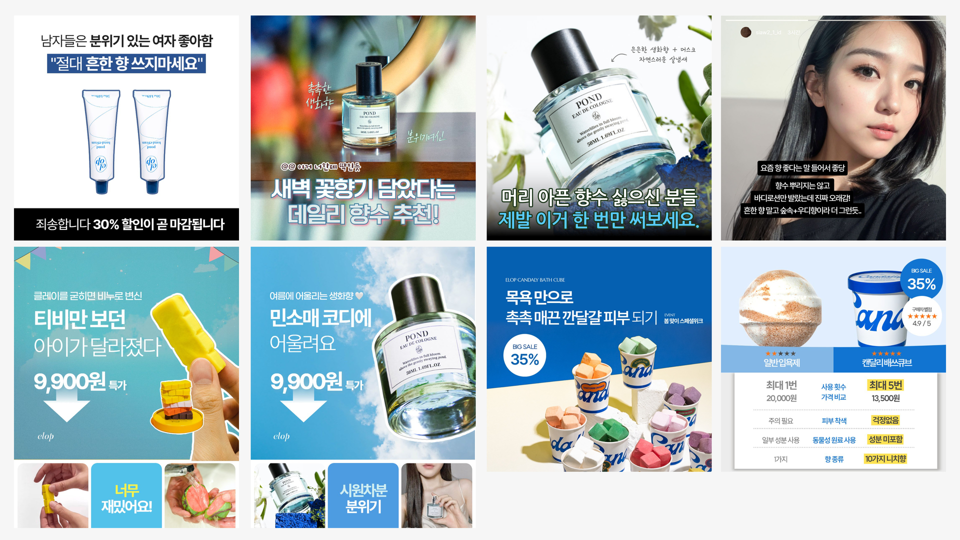 마케팅 전문가인 패스투는 고객들이 프로모션과 제품의 정보를 짧은 시간 내에 파악할 수 있도록 템플릿을 디자인하여 본격적인 광고 소재를 제작합니다 🎨