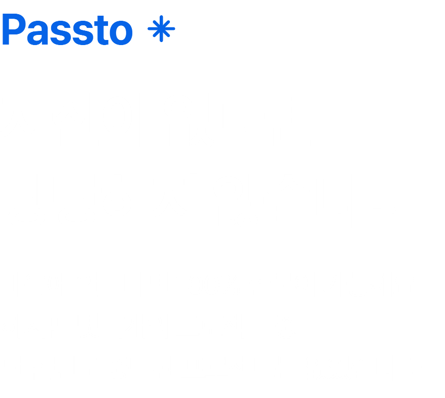 사업자등록번호 172-81-03261 [사업자정보 확인] | 통신판매신고번호 2024-경기김포-3632 P: 070-8027-2226 E: hello-passto@naver.com | Copyrights ⓒ 2023 PASSTO INC. ALL RIGHTS RESERVED