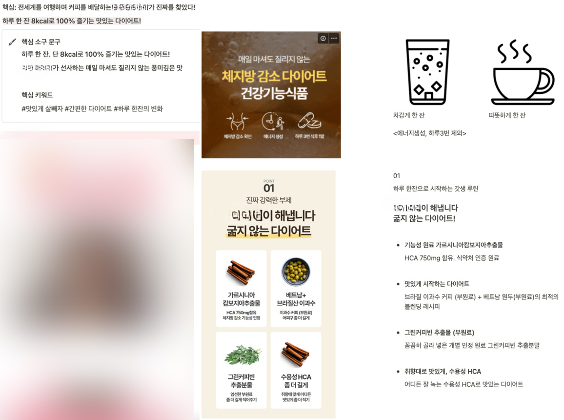 제품의 특징, 프로모션 내용, 카피라이팅 등이 명확하게 기재된 이 스토리보드를 통해, 클라이언트는 제작 전부터 결과물을 명확히 짐작할 수 있습니다. 📝