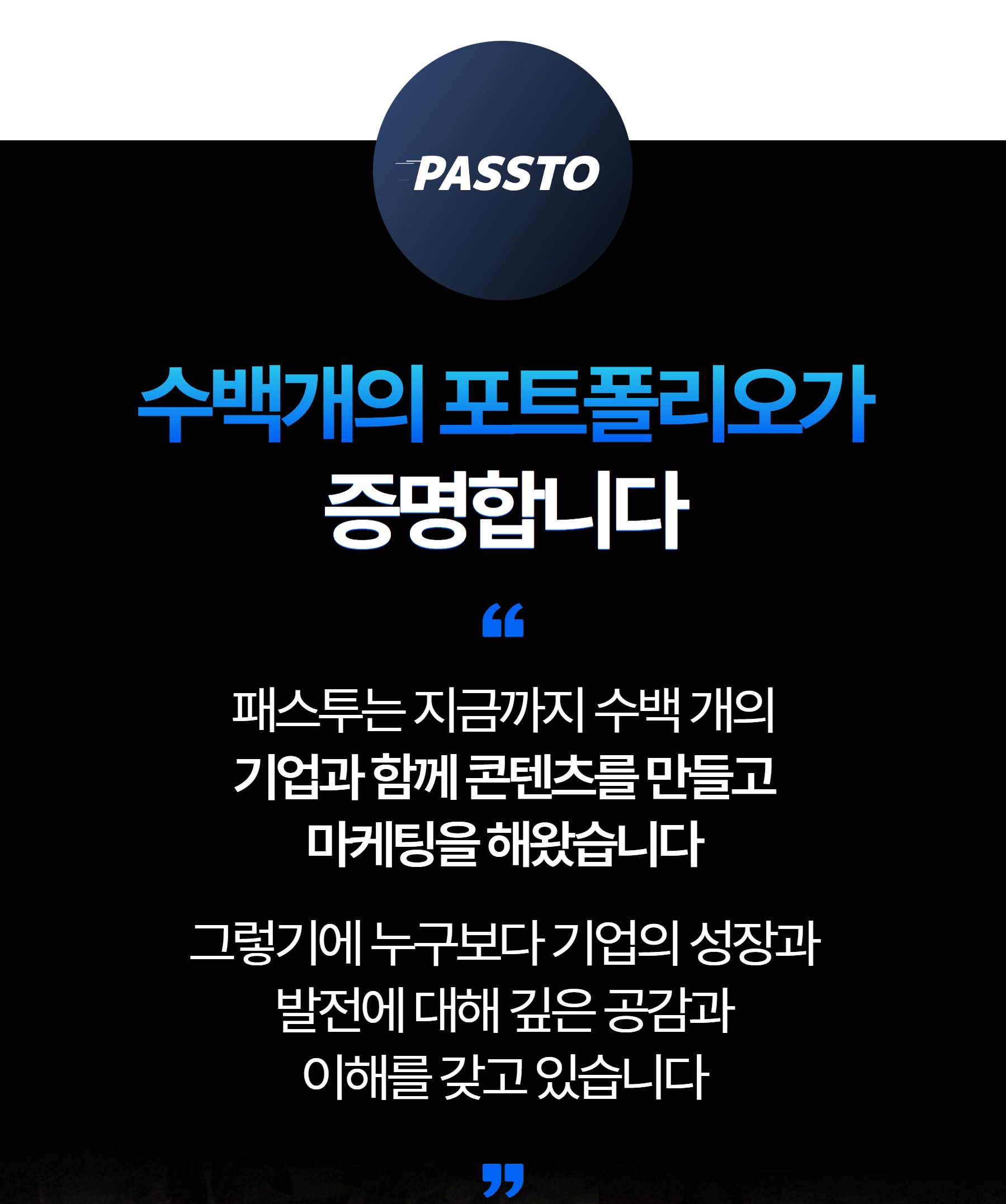 패스투에서는 클라이언트의 아이디어가 현실로 구현되는 과정을 더욱 직관적이고 명확하게 합니다. 영상 제작 전, 구체적인 스토리보드를 제공하여 완성된 영상을 예측할 수 있도록 돕습니다.